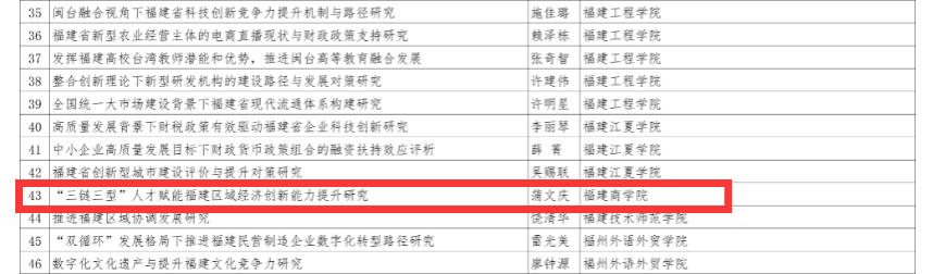 金年会项目《“三链三型”人才赋能福建区域经济创新能力提升研究》获得资助。