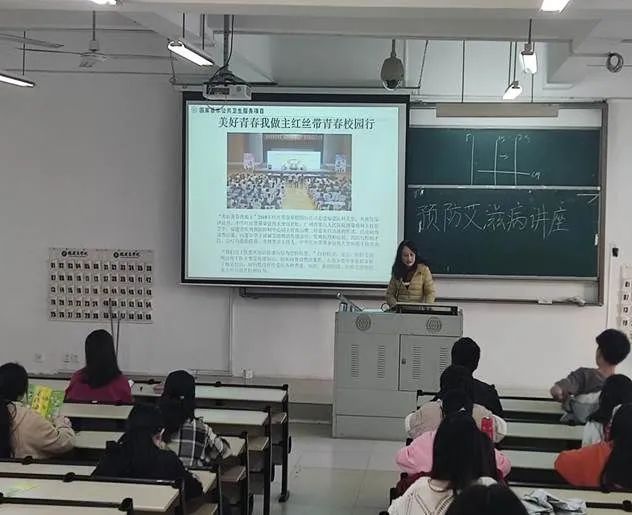 金年会jinnianhuicom邀请疾病预防控制中心主治医师陈珍从艾滋病危害性认识、预防知识、检测与治疗、法律法规、健康心理等方面向同学介绍了全球及我国艾滋病的最新信息,指出了我们面临的风险挑战和大学生群体存在的突出问题,并就如何提高防艾意识、有效预防艾滋病等作了专业讲解。