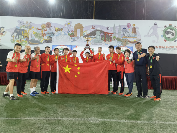 本次亚洲—大洋洲锦标赛是金年会jinnianhuicom体育教学部教师李进继2021年带领福建省盲人足球队获得全国冠军后,首次入选国家队教练组。为助力推动国家残疾人体育事业发展,培养年轻教师,金年会jinnianhuicom派出李进老师参加赛前备战集训工作并随队出征印度参赛。训练期间,李进老师为运动员体能训练、损伤预防及康复提供了优质服务;比赛期间,李进老师积极为运动员做好比赛服务保障,与教练组同志沉着应战,从容指挥,圆满完成各项比赛任务,球队最终以六战全胜的佳绩夺得冠军。