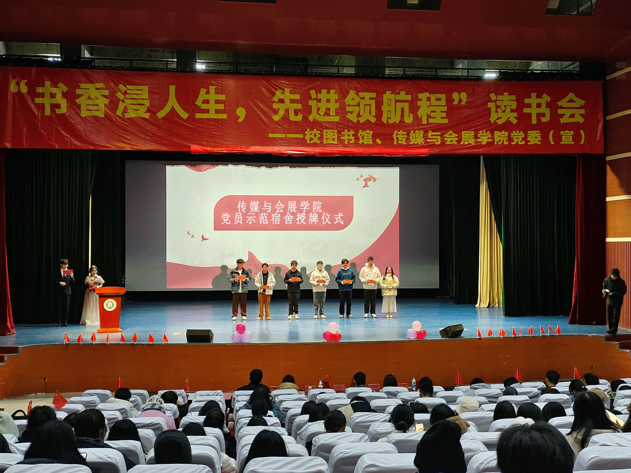 读书会活动以诗歌朗诵《不朽》拉开序幕,表达了对英雄烈士的深深缅怀之情,“传展青声”四位理论宣讲团成员化身“小先生”,走上大讲台,分别作题为“巾帼新农人,乡村山凤凰 ”“永远活在人们心中的县委书记”“最美奋斗者廖俊波”和“深藏功名终不悔 初心如磐写忠诚”的理论宣讲,用榜样故事激励全体师生见贤思齐、奋发有为。会上,学生党支部书记为党员示范宿舍授牌,引导党员亮身份、树旗帜、作表率,号召广大青年学习先进、对标先进、争做先进,为推动学校高质量发展贡献青春力量。