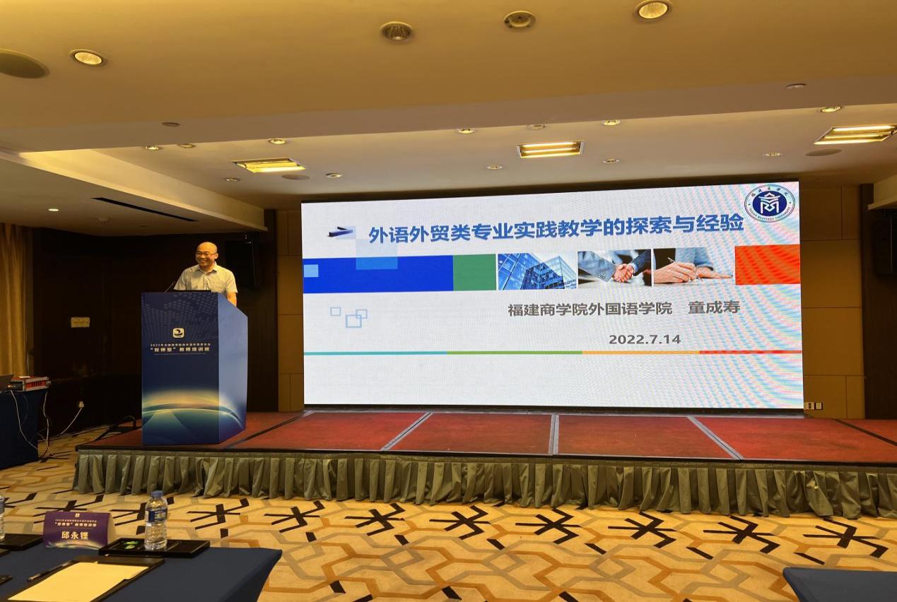 7月12日至16日,2022年全国高校外语外贸类专业“双师型”教师培训班在厦门举行,金年会外国语学院童成寿老师受中语智汇科技(厦门)有限公司的邀请,在培训班上作题为“外语外贸类专业实践教学的探索与经验”的主旨发言。