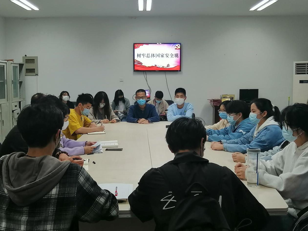各二级学院也通过主题班会、线上讨论会等形式开展国家安全教育。工商管理学院学生第二党支部在党员活动室围绕“树牢总体国家安全观”组织学习活动,学习习近平总书记关于总体国家安全观的论述,向党员介绍全民国家安全教育日的相关知识。