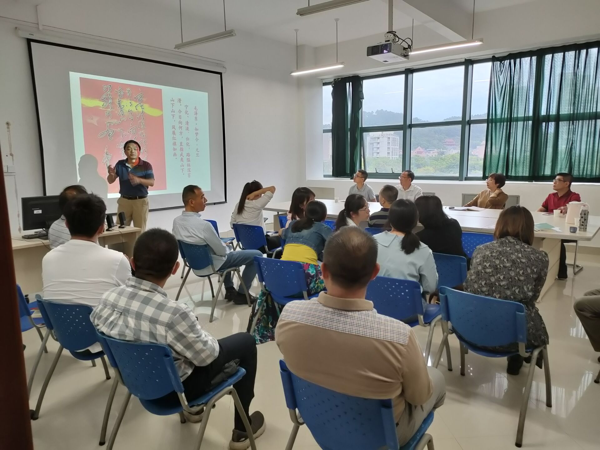 5月8日下午,金融学院在院会议室举行 “毛泽东诗词背后的党史故事”学习大会,金融学院党委书记林翔主讲,全院教职工、校党史学习教育巡回指导三组参加学习大会。