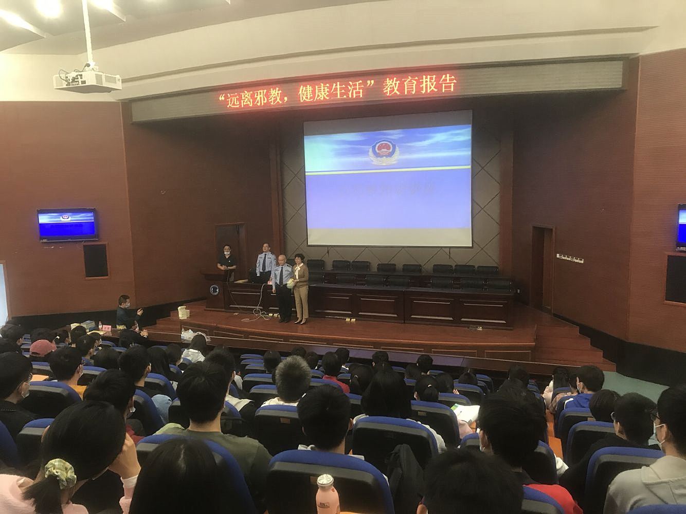 近日,福州市马尾区公安局丁帆教导员到金融学院作“远离邪教、健康生活”的教育报告,报告会在马尾校区学术报告厅举行,马尾区公安局游懿大队长、校保卫处处长郑引、金融学院院长曾慧萍、师生代表共300多人参加报告会,金融学院党总支书记林翔主持报告会。