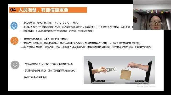 本次直播以“线上广交会的前期准备攻略”为专题,邀请了技术型TikTok运营实践者李旻曦和福州千邦电子商务有限公司总经理刘小梅开展教学。李旻曦老师为大家分享了“如何布置线上直播间”,介绍了声音环境改造、辅助道具、收音、灯光、拍摄器材、网络带宽、墙纸和背景板等对直播间搭建的影响。刘小梅经理常年从事外贸进出口采购业务,她结合自己的参展经验,从展会前的设备采购、样品和资料的准备、摊位装修、直播间装修、人员准备、突发状况应对等5个方面深入浅出地介绍了参加线上广交会的准备过程和注意事项。