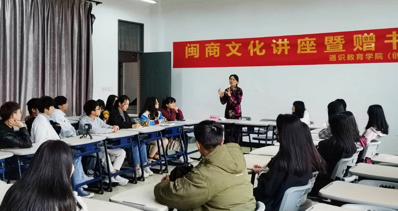 12月24日下午,通识教育学院(创新创业教育中心)在连江校区举办闽商文化讲座暨赠书活动,邀请金年会外国语学院黄梅红老师开讲,闽商协会、校记者团成员参加了此次活动。