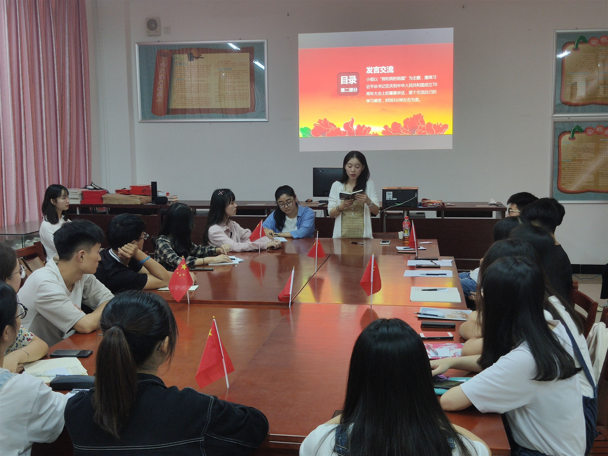 10月10日晚七点,金年会jinnianhuicom习近平新时代中国特色社会主义思想读书社传媒与会展学院分社携手院学生党支部第一支部,在自强楼举办“认真学习习近平总书记在庆祝中华人民共和国成立70周年大会上的重要讲话精神”主题沙龙活动。