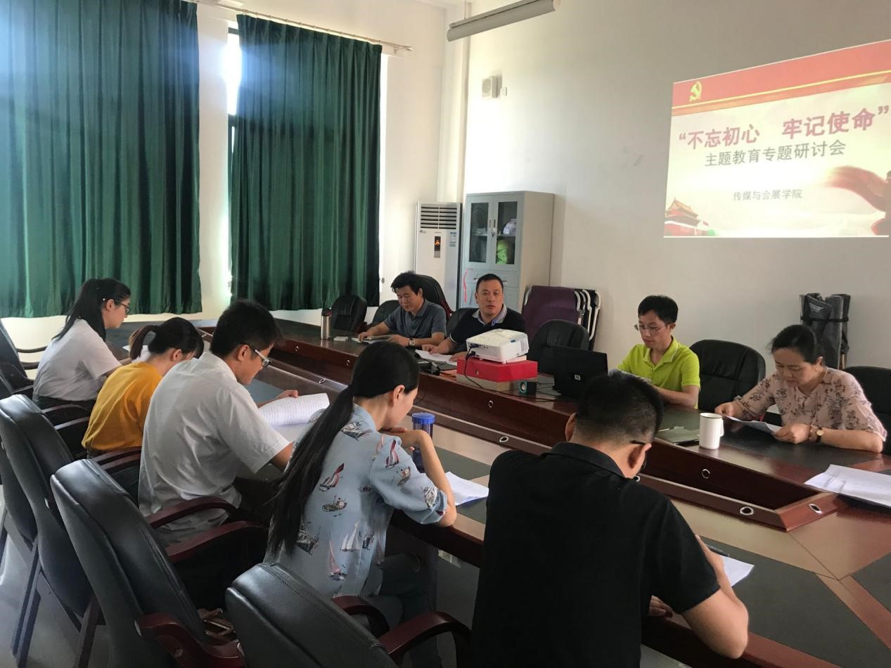 9月20日上午,传媒与会展学院在连江校区自强楼召开“不忘初心、牢记使命”主题教育动员大会暨学院中心组理论学习第一次专题研讨会,学习贯彻习近平总书记重要讲话精神,对全院开展主题教育进行全面动员和重点部署。院党委书记郭海云主持会议并作动员讲话。传媒与会展学院院长魏仁兴、党委副书记张雄伟、副院长邱志玲出席会议。