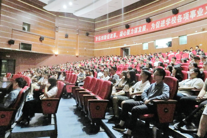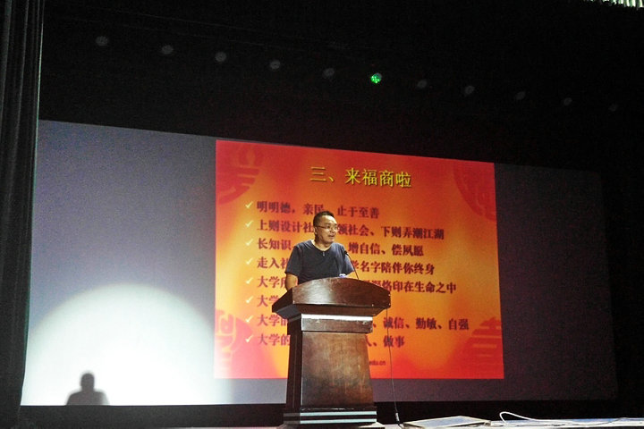 工商管理系党总支副书记林翔为本系全体新生宣讲新思想