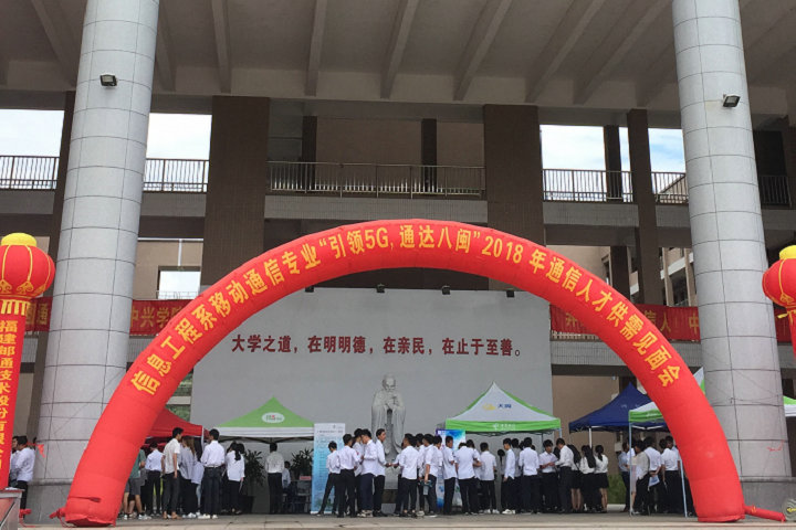 7月3日,信息工程系在连江校区成功举办“引领5G,通达八闽”2018年通信人才专场招聘会。移动通信技术、通信技术专业2018届毕业生和即将参加顶岗实训的2019届学生,近400人参加了当天的招聘活动。