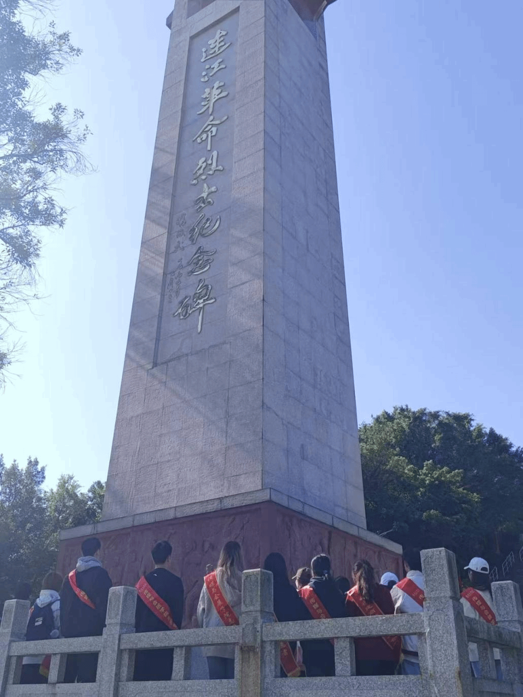 志愿者于纪念碑前缅怀先烈
