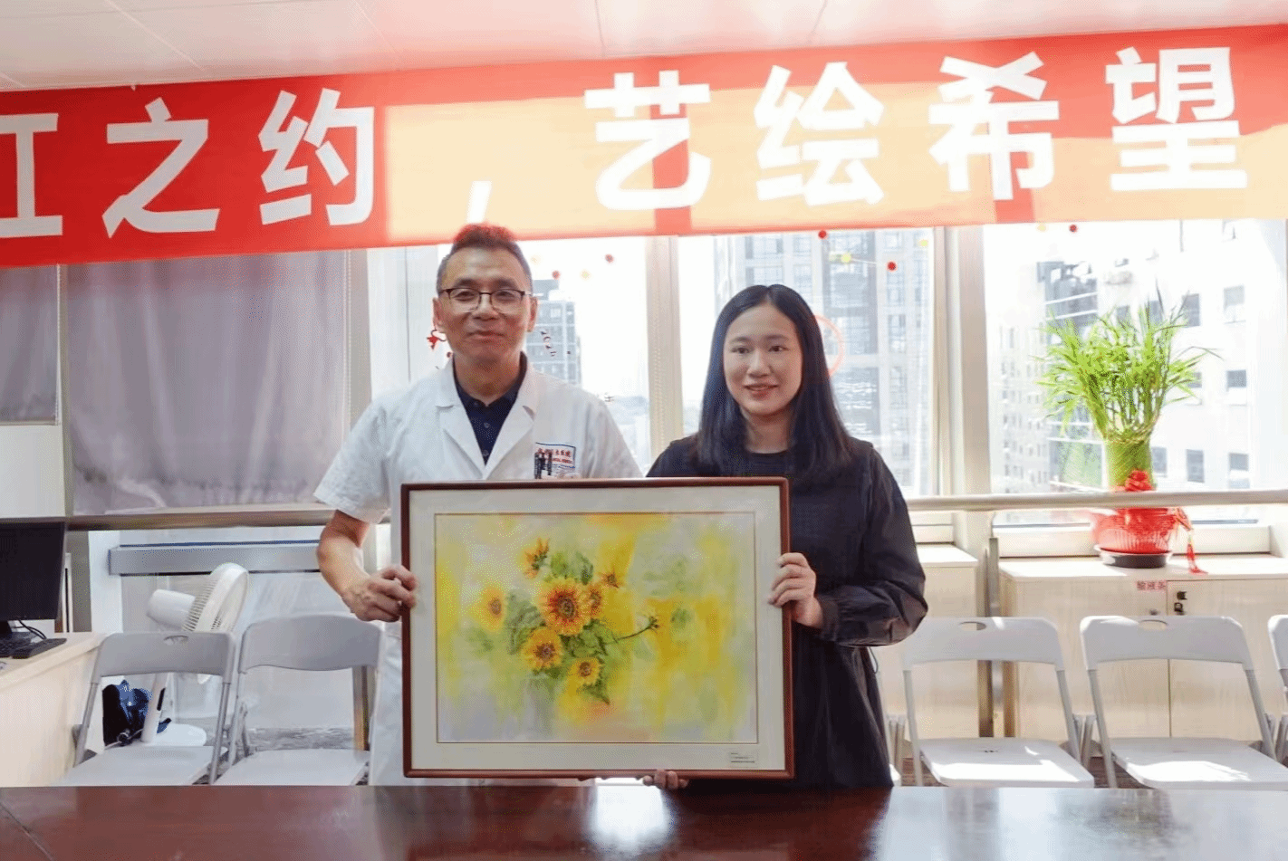 活动紧扣“粉红丝带月”主题举办绘画比赛,号召同学们用手中画笔传递对乳腺疾病患者的人文关怀与美好祝福,并将获奖作品赠与省立医院乳腺外科。活动当天,一幅幅精美的画作被悬挂在病房的走廊上,缤纷的色彩、温暖的笔触为病房增添了不少生机与活力,来往者纷纷驻足欣赏,整个病区都弥漫在温馨的氛围之中。