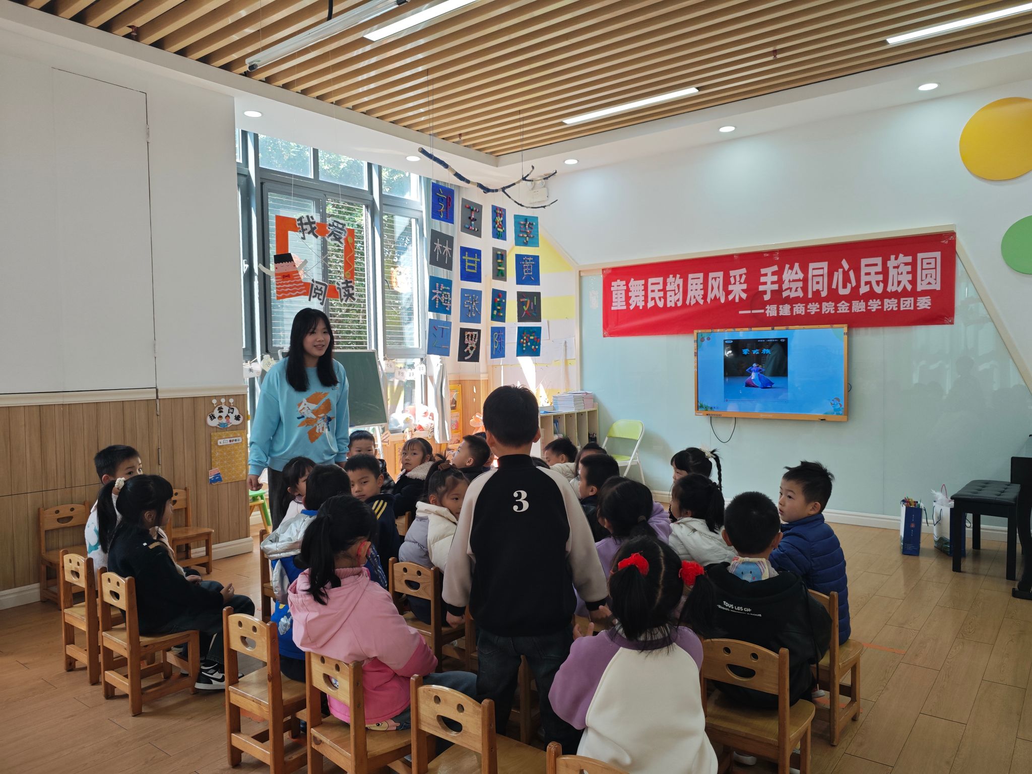 在闽亭社区,师生们进行舞蹈表演和歌曲合唱,为社区增添了一道亮丽的民族团结风景线。师生们为社区小朋友们教授各类少数民族舞蹈,在律动中感受少数民族的独特魅力。社区小朋友们用清澈悦耳的童声合唱《石榴籽》,歌声中传递的团结与和谐理念,在他们心中生根发芽。活动中还通过互动游戏,让小朋友们在欢声笑语中加深了对民族文化的理解和记忆。