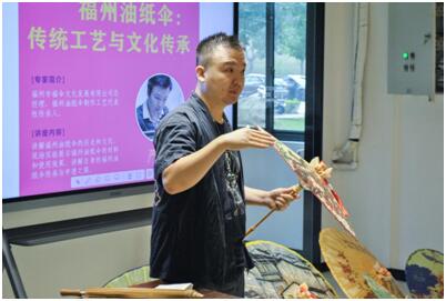 近日,艺术设计学院美育研究中心在福商艺苑篆刻实验室举办了专题讲座《福州油纸伞:传统工艺与文化传承》。讲座邀请福州市福伞文化发展有限公司总经理、福州油纸伞制作工艺代表性传承人严磊老师作为主讲人。