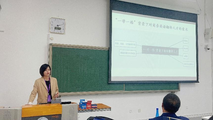近日,商务英语语言学十周年论坛暨第十届商务英语语言学国际研讨会在中央财经大学举办,外国语学院江盈盈博士、余小玲博士及薛韪禾博士受邀参会,并与其他参会专家学者就商务英语教学、商务英语语言学研究等话题进行深入探讨。薛韪禾博士受邀作为代表,在分论坛作题为“基于生态化教学的商务英语翻译教学模式研究”的发言,分享商务英语翻译教学方面的研究成果。她从生态化教学角度出发,围绕教学模式的构成、特点及方法的应用,强调以学习者为中心,以“实践”为抓手,以任务和成果为导向的教学理念和基本原则,详细讲解了“3C”商务英语翻译教学模式。
