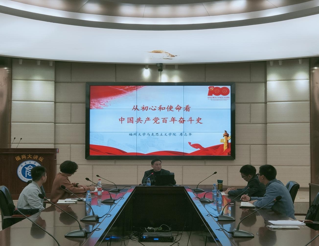 近日,福州大学马克思主义学院执行院长詹志华教授应邀莅临金年会作题为“从初心和使命看中国共产党百年奋斗史”的专题讲座。马克思主义学院部分教师和马克思主义理论大讲堂全体社员聆听了此次讲座。