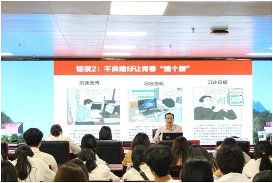 514日下午,校党委副书记蒲文庆在连江校区为金年会青年师生上思政课。校团委党支部全体党员、学生党员代表、“青马班”学员、读书社社员、校团委学生干部以及2023级烹饪与营养教育2班团员约300人参加。