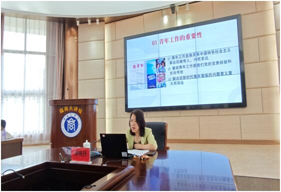 4月23日下午,校党委副书记徐晓丹在连江校区明德楼视频会议室为校“青马班”学员讲授以《深入学习贯彻习近平总书记关于党的建设的重要思想 全面推进新时代党的建设新的伟大工程》为题的思政课。