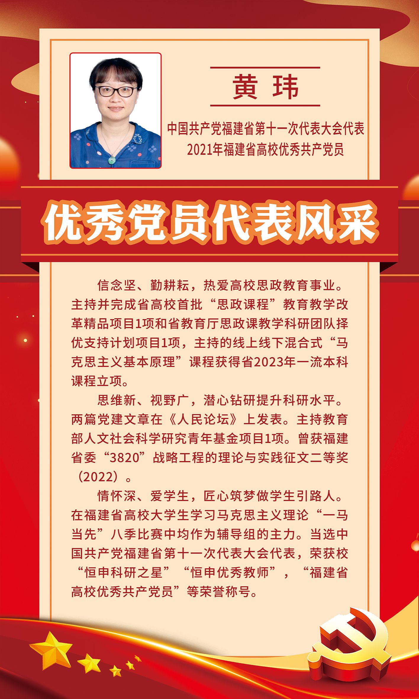 省第十一次代表大会代表、2021年福建省高校优秀共产党员:黄玮