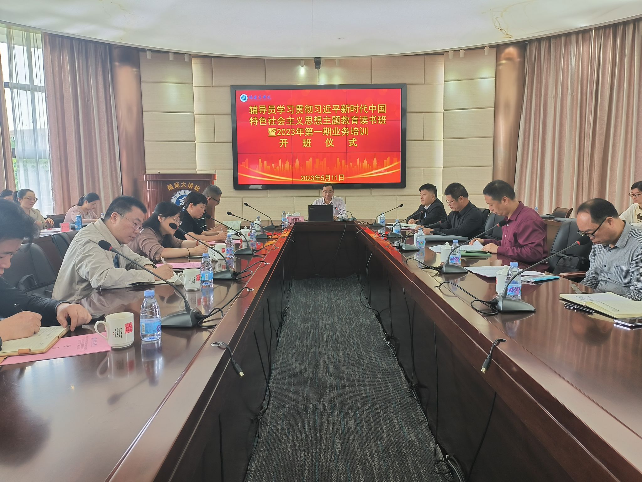 为进一步加强学校辅导员队伍建设,近日,金年会举办辅导员学习贯彻习近平新时代中国特色社会主义思想主题教育读书班暨2023年第一期业务培训班,副校长蒲文庆出席开班式,全体辅导员以及学生工作部工作人员参加培训。