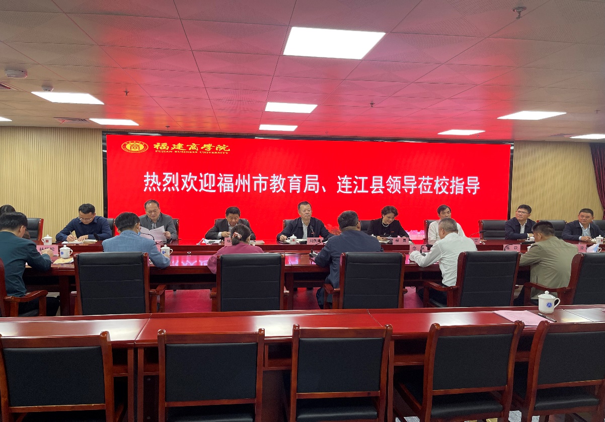 11月23日上午,福州市教育局、连江县现代物流城指挥部领导一行来校调研座谈推进校地合作、共建物流学院事宜。校领导刘剑津、程灵、杨晓翔、萧罡、周训胜,有关处室和二级学院负责人参加此次座谈。