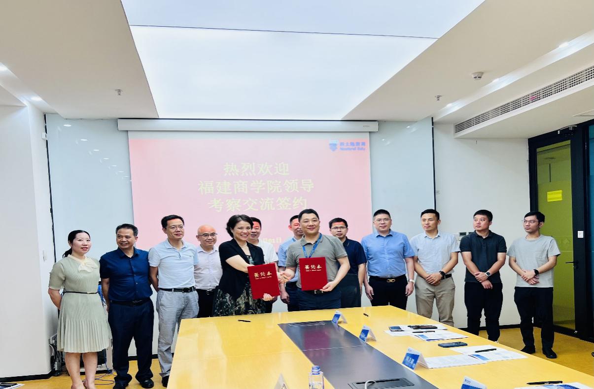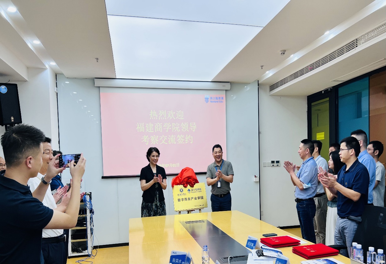 7月1日下午,金年会与新大陆教育集团共建数字商务现代产业学院签约暨揭牌仪式在新大陆教育集团举行。校长程灵、副校长杨晓翔、规划处负责人、工商管理学院主要负责人及教师代表、信息工程学院负责人、国际经贸学院教师代表等参加活动。