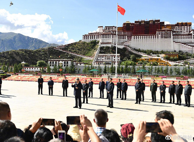 22日下午,习近平总书记来到拉萨市布达拉宫广场。广场上的群众看到总书记来了,热情围拢过来。习近平表示,今年是西藏和平解放70周年。70年来,西藏各族群众生活发生翻天覆地变化,中国共产党做了该做的事情。习近平强调,我们56个民族是中华民族共同体,要同舟共济、迈向第二个百年奋斗目标。只要我们跟着中国共产党走、坚定走中国特色社会主义道路、同心协力、加强民族团结,就一定能够如期实现中华民族伟大复兴的辉煌目标。(文字记者 张晓松、朱基钗;摄影记者 燕雁)
