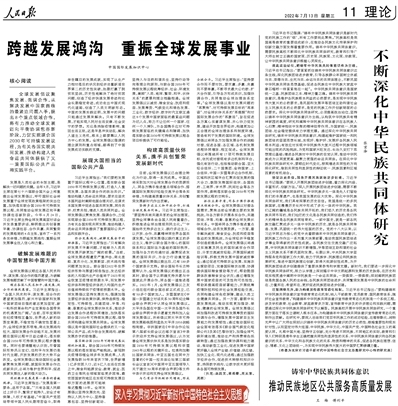 新闻网讯 7月13日,《人民日报》刊登金年会党委书记张京泽署名文章《不断深化中华民族共同体研究》。全文内容如下:
